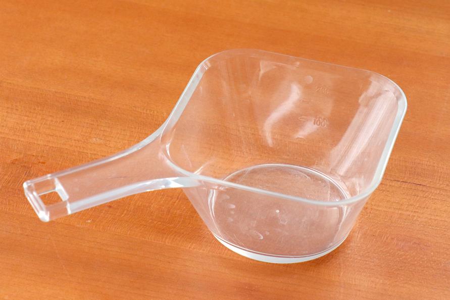 実はカップの一辺が斜めにカットされていて、斜め置きすることでカップなのに大さじが量れてしまう優れものなんです!