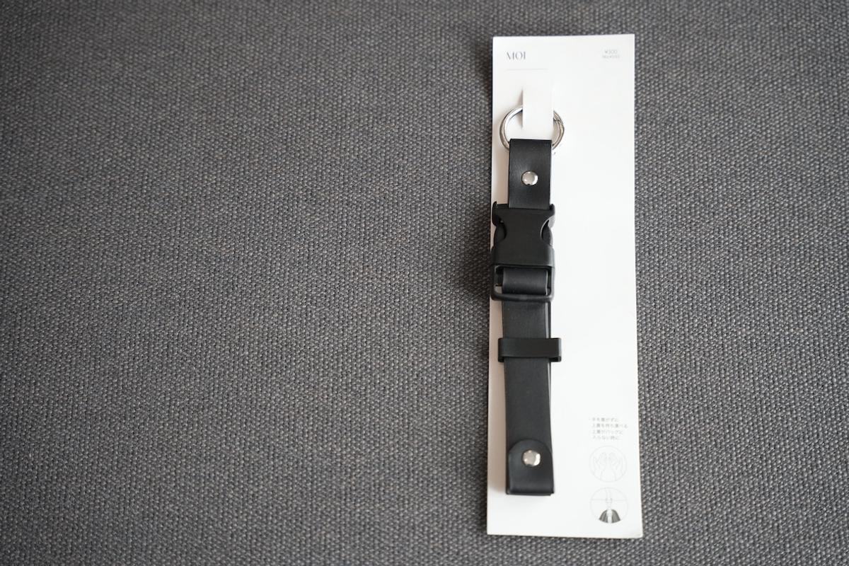 ブラックの丈夫なストラップに、シルバーのカラビナが組み合わされており、どんなバッグにも自然に馴染む洗練されたデザインが魅力です。