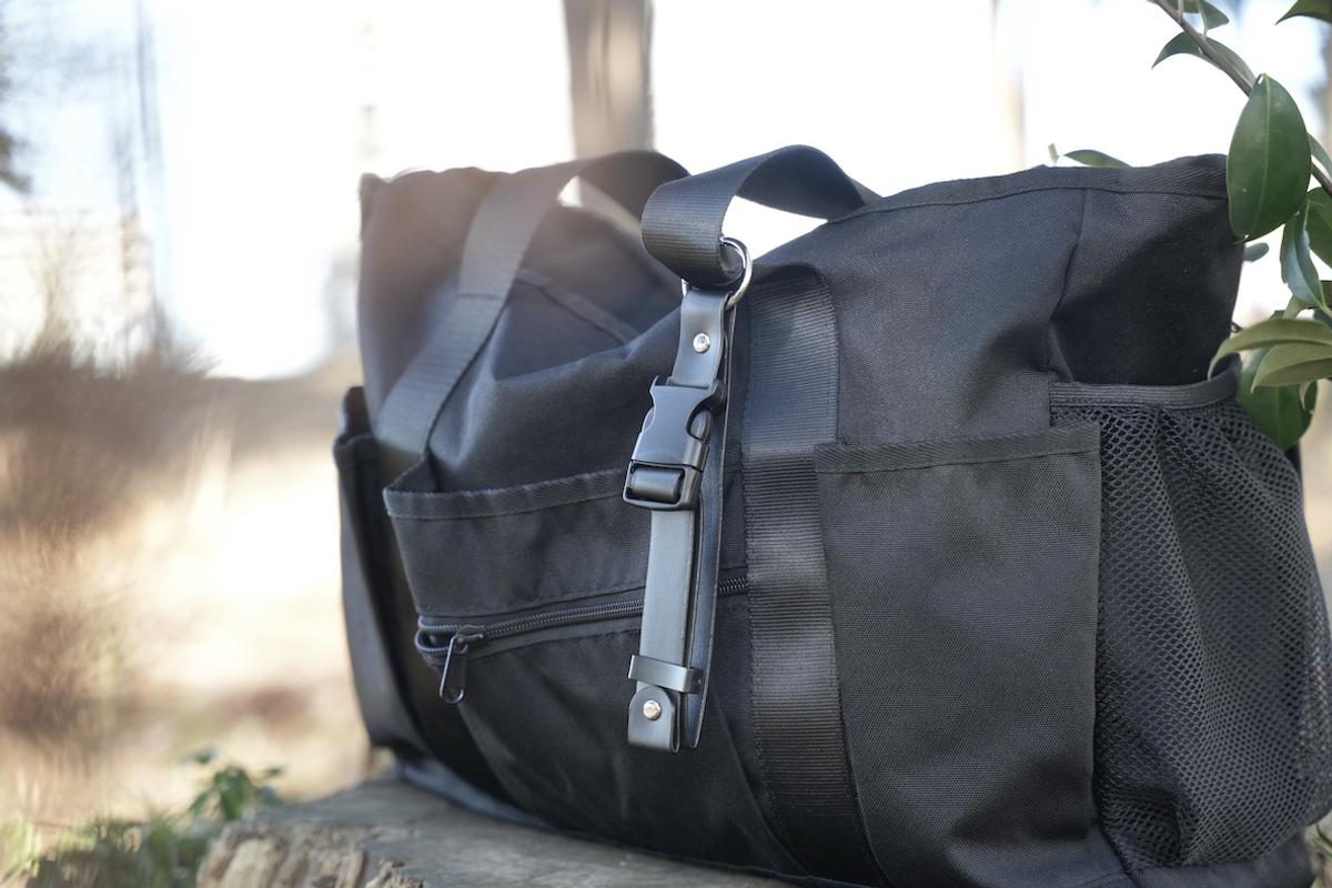 取り付け用のカラビナの内径が約2.5cmとやや小ぶりなため、持ち手が極端に太いバッグには通らない可能性があります。