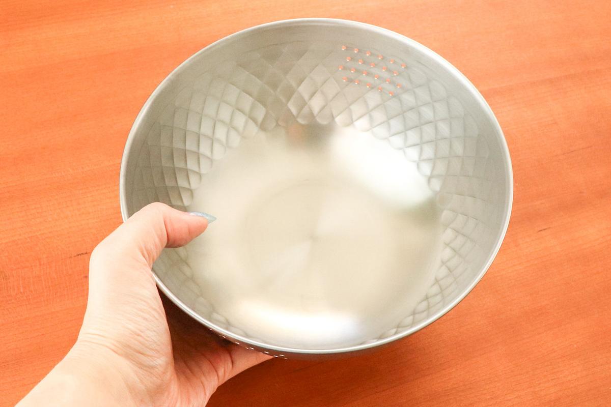 今回取り入れたのは、新潟県燕三条発の調理器具ブランド・逸品物創の「ステンレス米研ぎボウル18cm」。