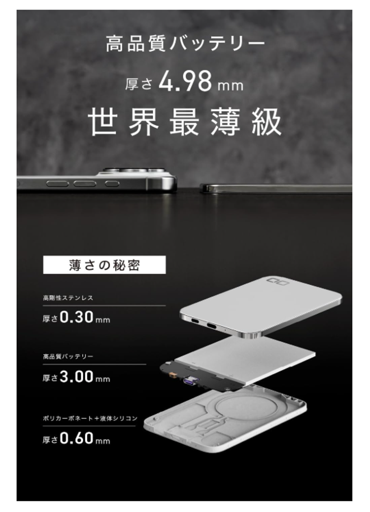 CIOの「SMARTCOBY ULTRA SLIM 3K」は、驚異的な「薄さ4.98mm」と「約82gの軽さ」、MagSafe対応でスマートフォンと一体化し、携帯性の高さが特長の超薄型モバイルバッテリー。