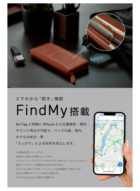 本製品はAppleの「探す(Find My)」に対応したなくしもの防止タグを内蔵しています。