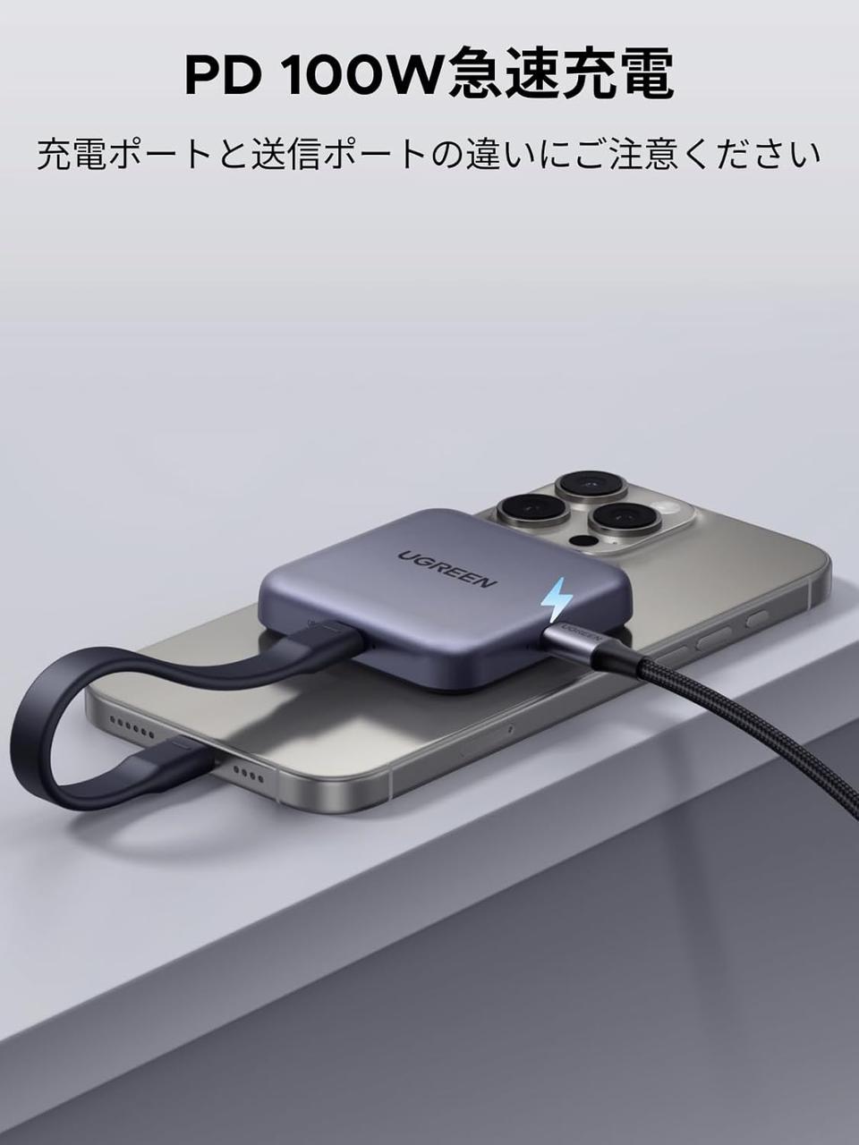 ケーブルは着脱式のため、好みのUSB-Cケーブルに交換できるのもいいですね。