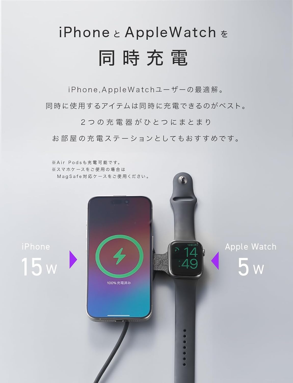 実際、ホテルの部屋に着いてからが一番面倒なんです。疲れているのに、カバンの底からApple Watchの充電器を引っ張り出し、次にスマホ用を探して、空いているコンセントを奪い合う……。