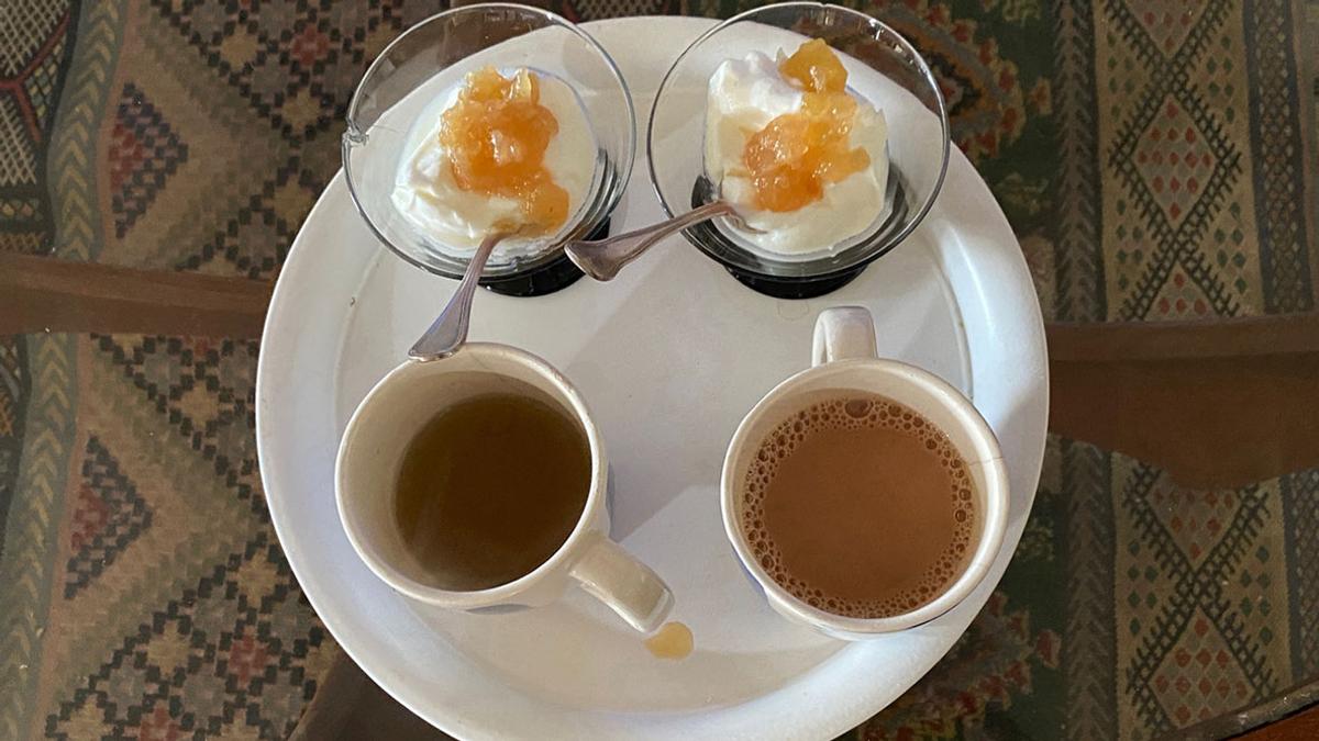 プロテイン、ミルクティ、ヨーグルト(リンゴジャム)