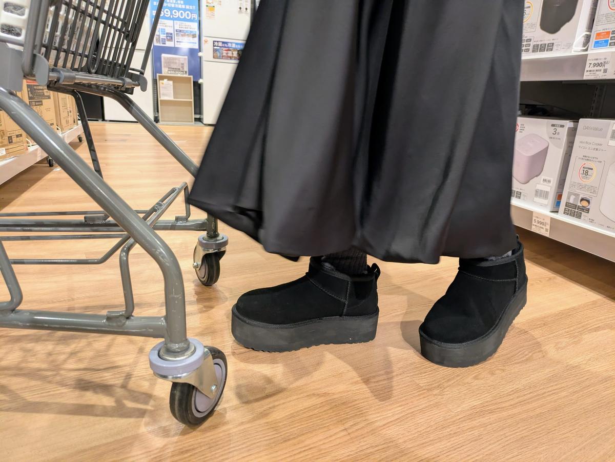 厚底UGGは、意外と合わせるアイテムを選びません。