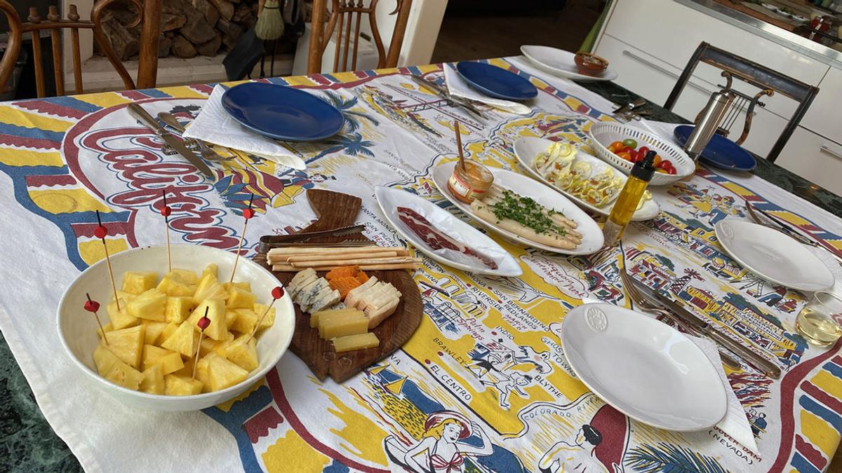 今日は濱ちゃん(浜崎貴司)とベビ(暁子)ちゃんと高木完ちゃんが立派なワインを携えて訪ねて来てくれた。やった~~~。テーブルに並べたのは(私担当です)ホワイトアスパラガス(ルイユ+マヨネーズ)、ちび白菜(ブルーチーズ+カラスミ粉)、ミニトマト(アイコ)、パイナップル、チーズ(コンテ、タレッジオ、ゴルゴンゾーラ、ミモレット)、イベリコハム、