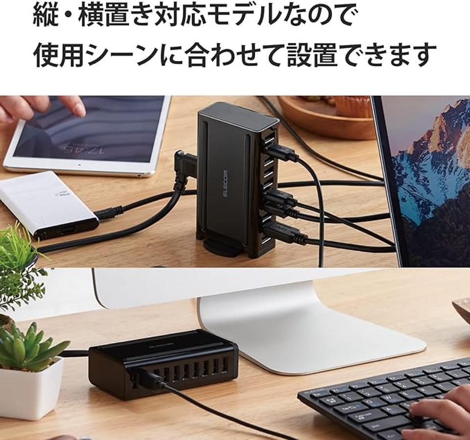 そんな悩みを一発解決してくれるのが、エレコム(ELECOM)の「卓上多ポートAC充電器(60W/Aポート×10) EC-ACD04BK」です。