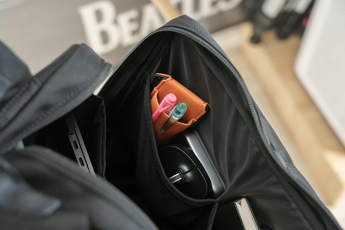 意外と“2本分のペンホルダーがあるバッグ”って少ないんですよね……。その点で、バッグ内がより整理されるし、バラバラにならないのも助かるポイントです。