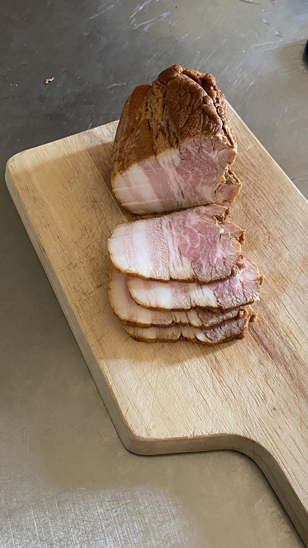 長ネギに豚バラの薄切りを巻きつけて焼いたもの(シチリアの屋台料理だそうですよ。Mangia e Bevi! =食べろ、そして飲め!)うちには肉が3本分しかありませんでした。