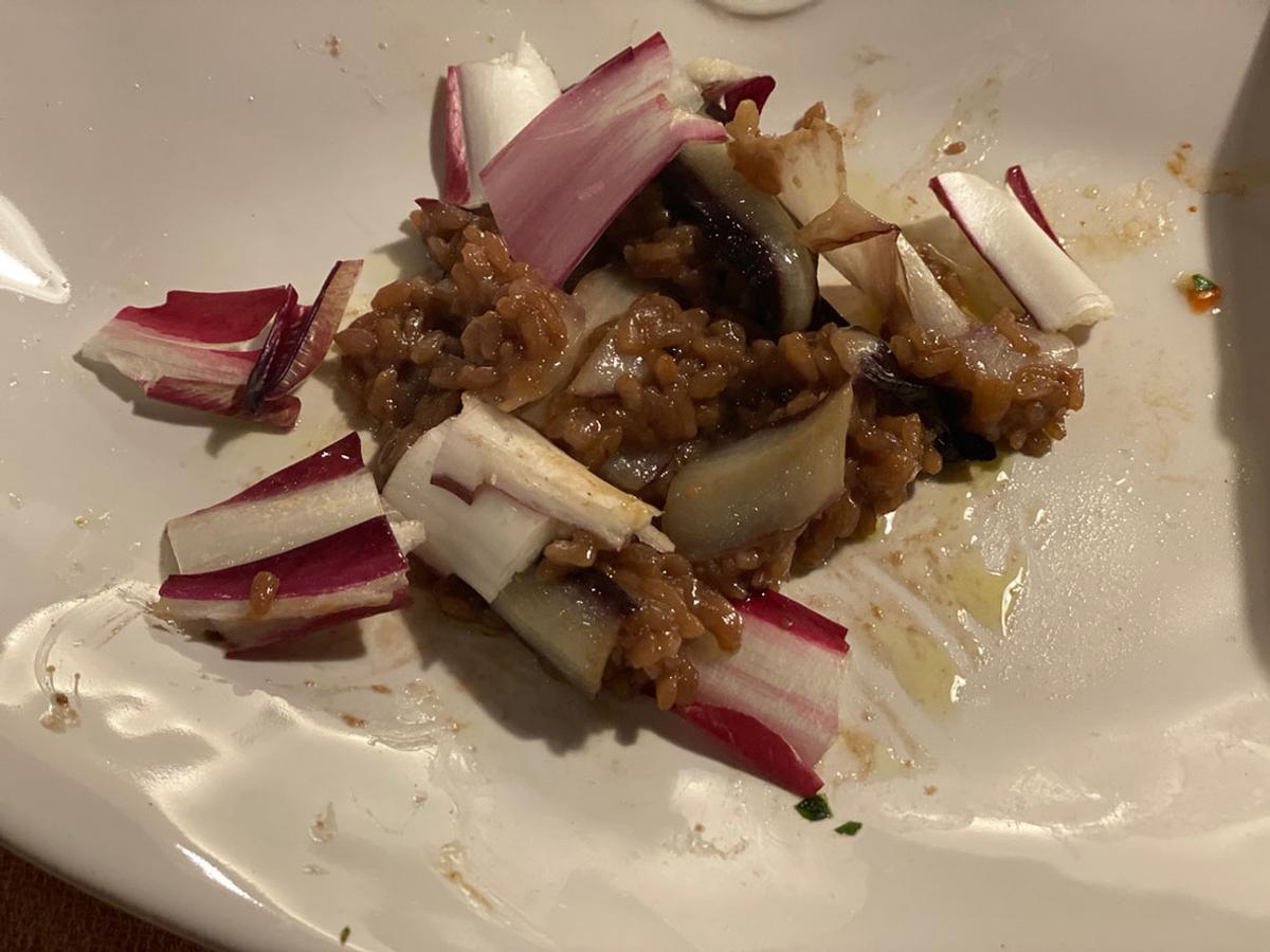 メインディッシュはラディッキオ・タルディーヴォの赤ワイン入りリゾット。REGALO/小倉さんのレシピです。今日もまたアイデア拝借しました。ありがとうございます。最後にざく切りした生ラディッキオ・タルディーヴォを載せたら、より美味しくなりまして、ブラヴォー!!!なのでした。