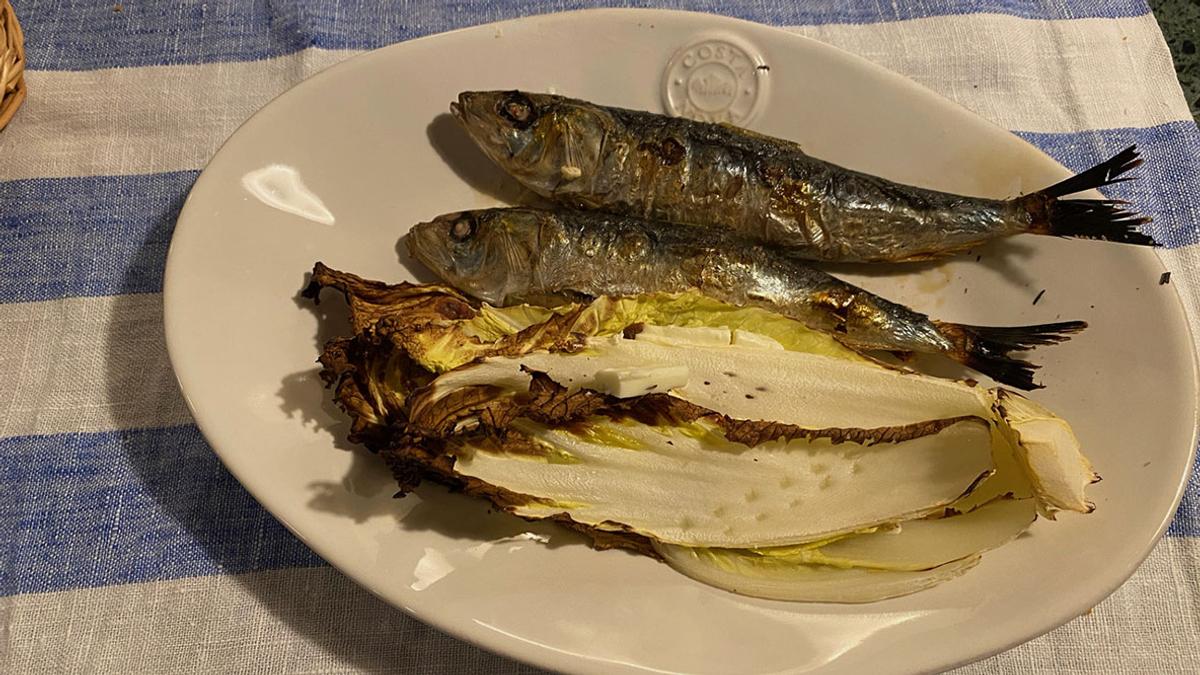 鰯の塩焼きと白菜のオーブン焼き(アンチョビとクリームチーズを挟んだ)。この皿もワイルドで美味しかった。本日の夕食、自分で自分を褒めました。いい気分です。