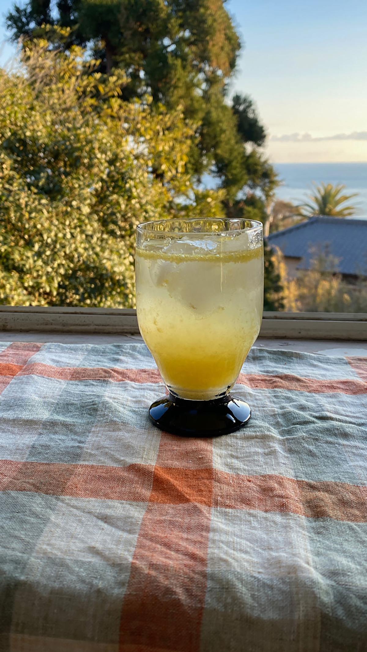 夕方の窓辺。夏みかんとラムの炭酸割りをのむ。我が家育ちの夏みかん、とってもうまいです。