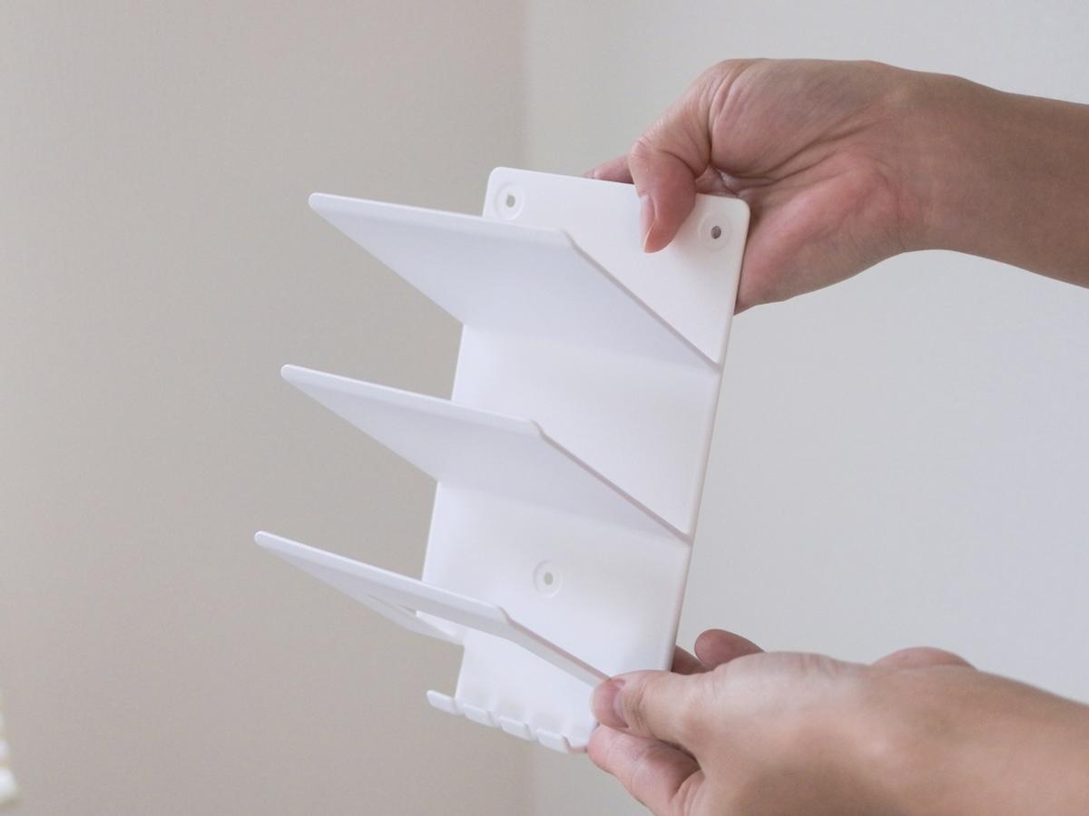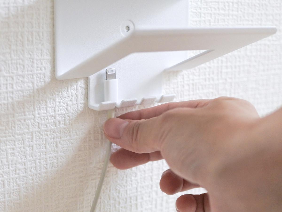 3段のラックのほか、充電ケーブルの差し込み口をかけることも可能。