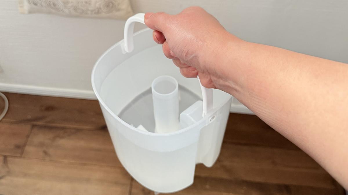 この加湿器の特徴は、名前の通り給水タンクだけを取り外して持ち運べる点にあります。本体を動かす必要がなく、タンクを外して蛇口まで持っていくだけで給水ができるのは想像以上にラクでした。