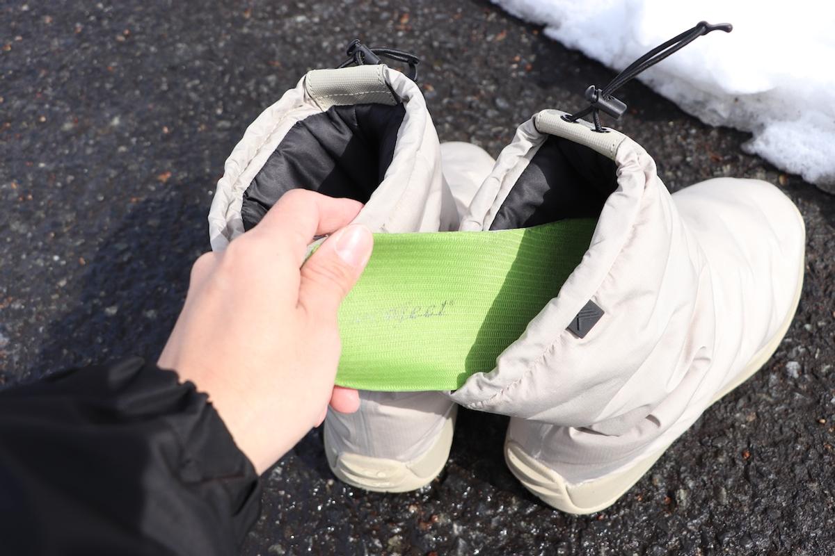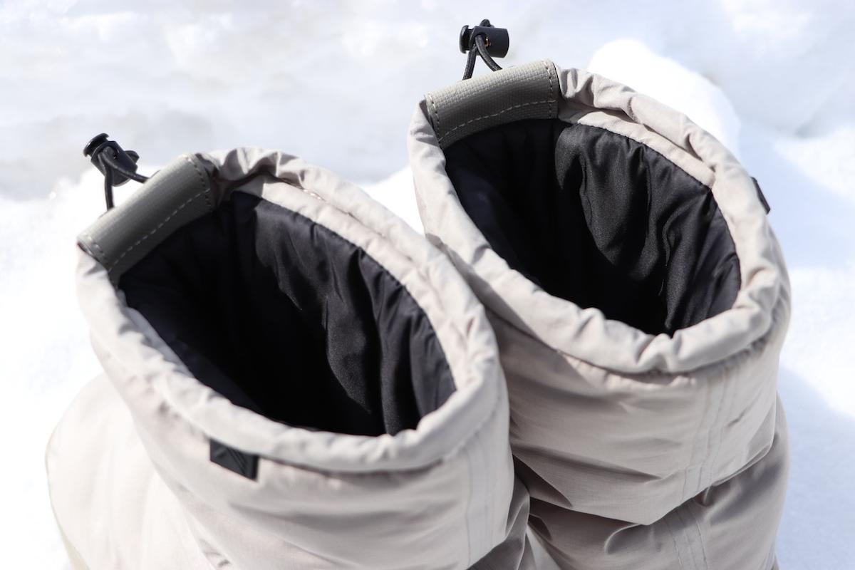 履き口もドローコードで調整可能、雪の侵入も防ぐことができます。