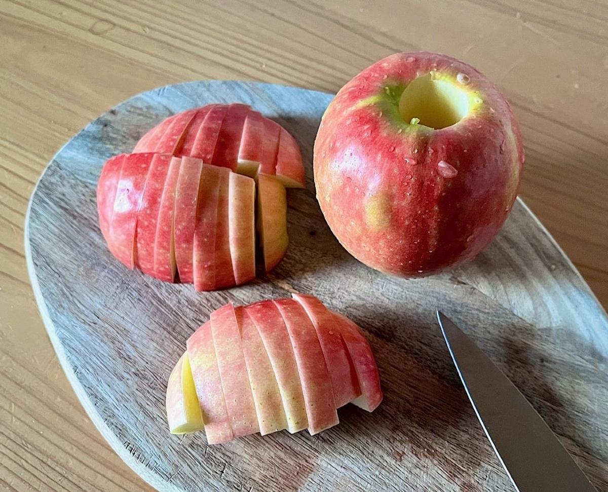 ヨーグルトに合わせてほぼ毎日のように食べているりんごのコンポートも、くり抜いたりんごをそのままカットするだけで済みます。