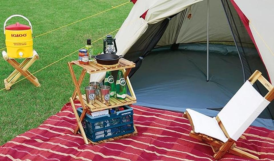 散らかりがちなキャンプ道具がスッキリ! 天然木の折りたたみラックが39%オフ!