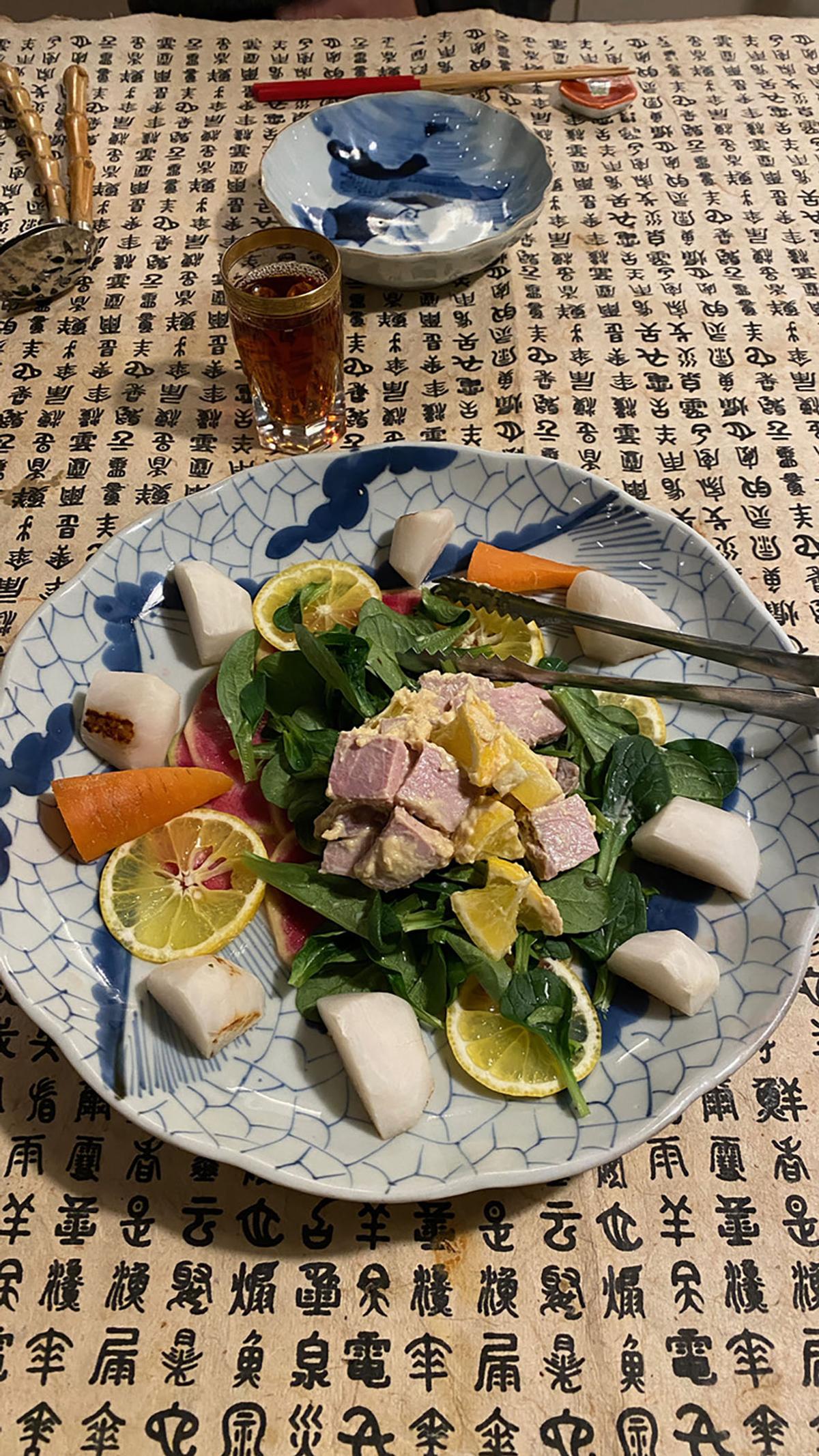 外食案も出ていたのだが、雪も降っているし、手持ち食材がいっぱいあるし…..そんなわけで、こんなになんでも入っている前菜皿からスタートです。