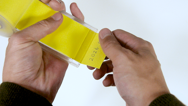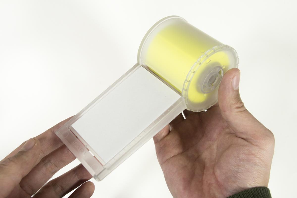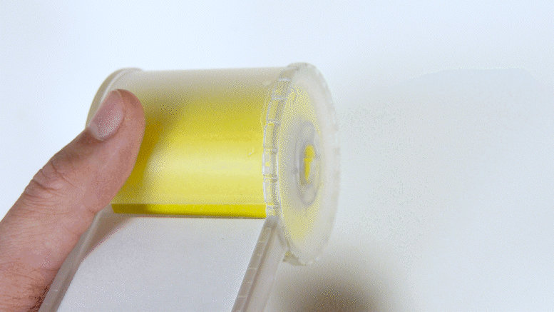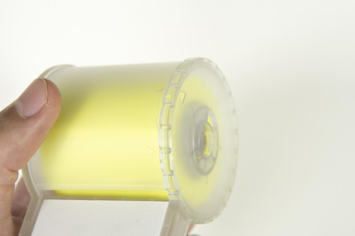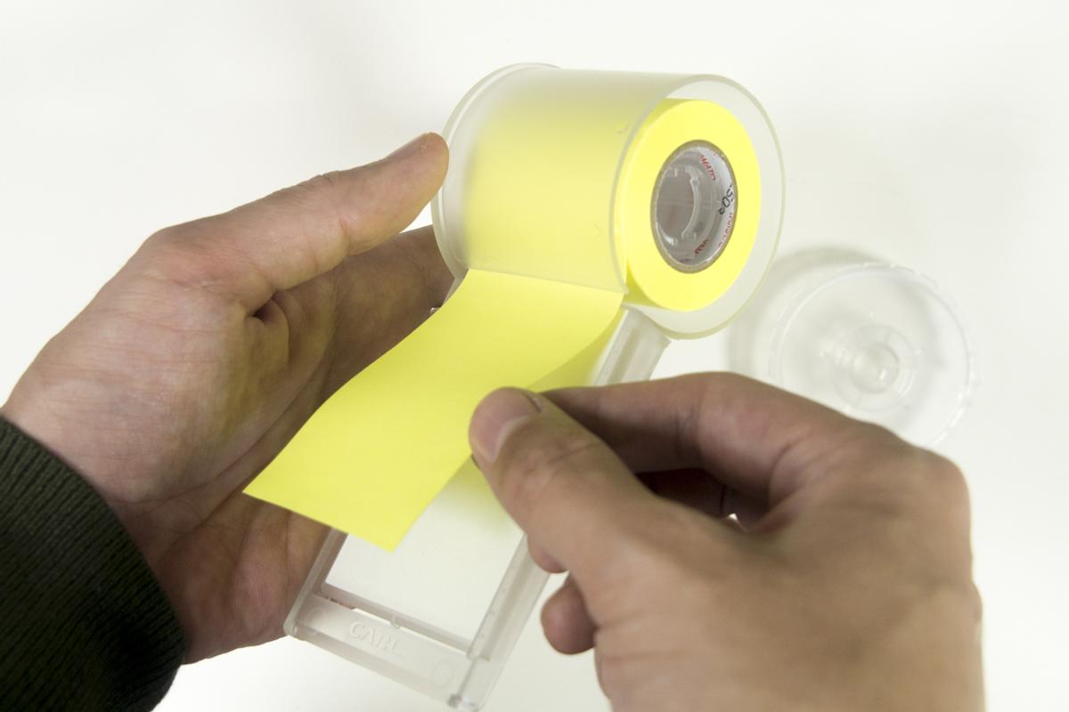 ロール付箋を引き出して、先端のスリットに差し込めば準備完了。