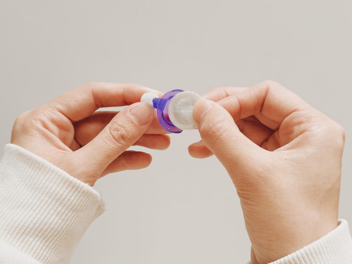 使い方は、自分に合うイヤーピースを本体にセットし、発熱体を押し込むだけ。