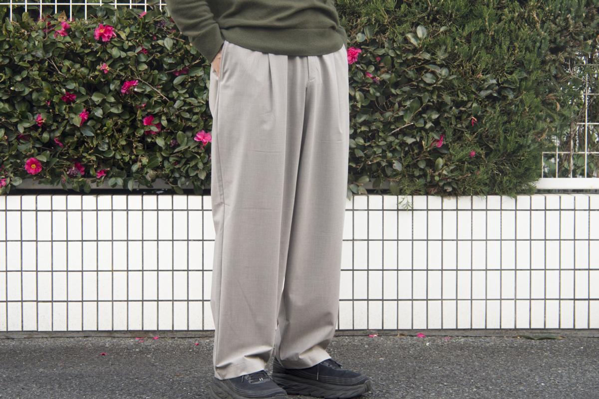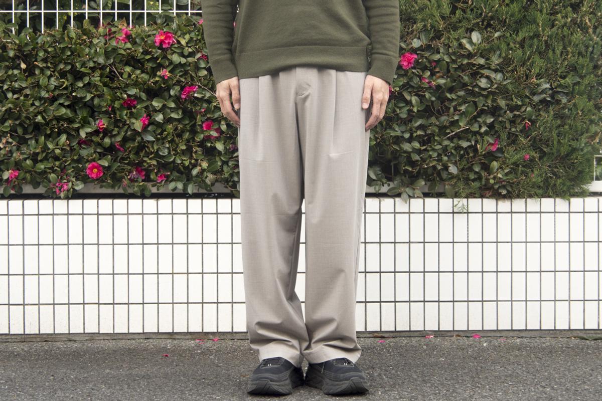 裾に生地がたまったときのシワの入り方が綺麗で、個人的には裾上げせずユルっと穿くのがいいなと思いました。