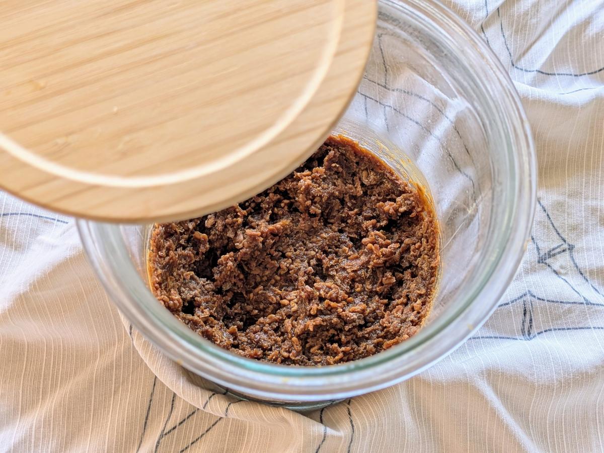 ※キットが入っていた容器に戻せばOK。空気を抜きながら、ギュギュッと押し込み、スプーンなどで表面を平らに整え、ラップをかけてフタをすれば完了です。