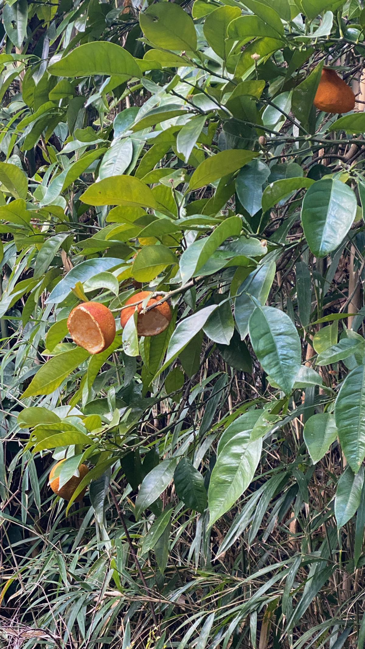 今日は後期高齢者健康検査のため、朝食は禁止。庭の橙の実はこの辺にたくさん生息する「台湾りす」がこんな具合に食べちゃっています。上手に食べるものだなあ、と感心。