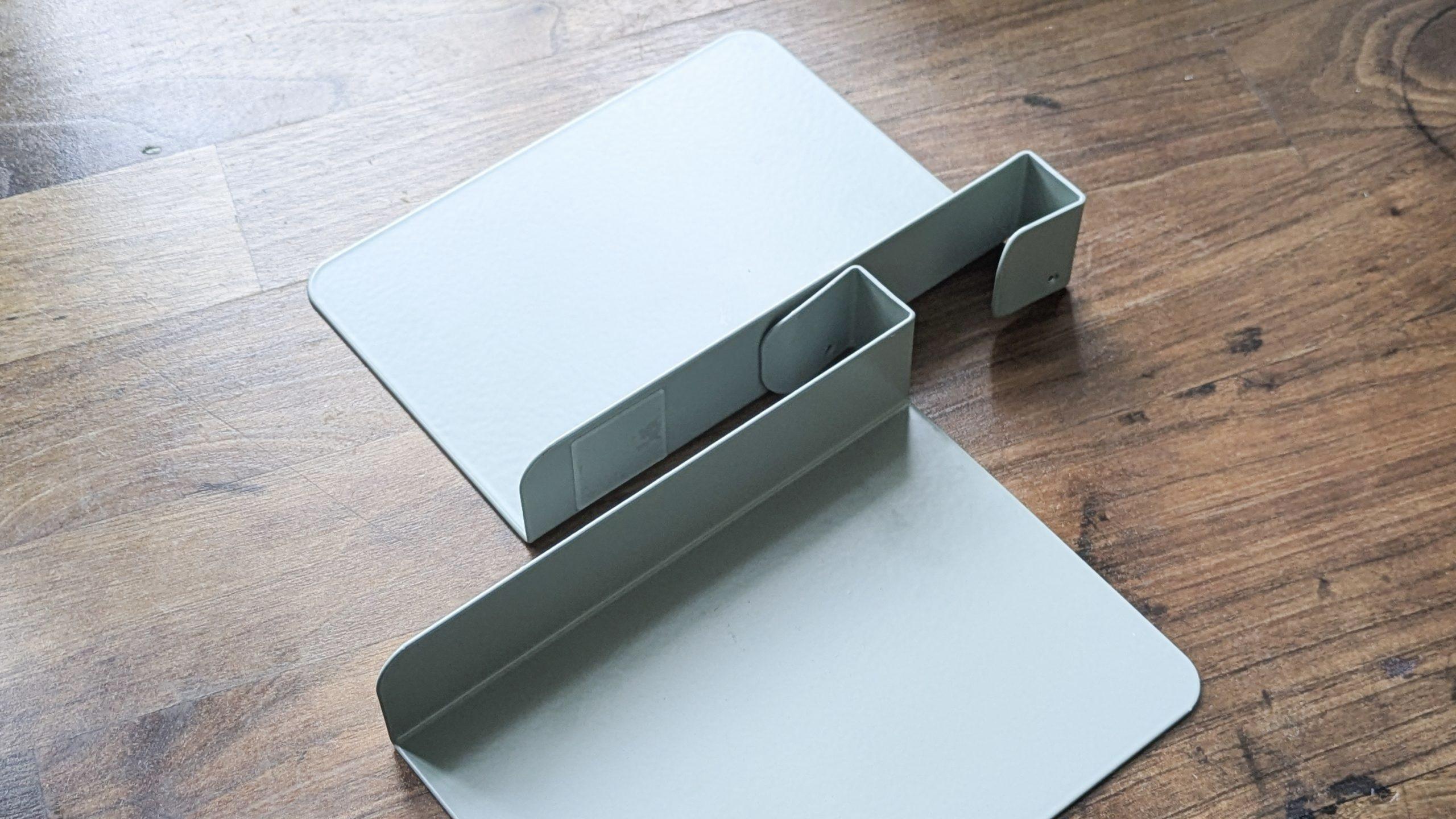 ネジで机の下に固定するだけで、A4書類やタブレットを「隠して」保管できます。引き出しのように中身が積み重ならないので、出し入れも驚くほどスムーズ。