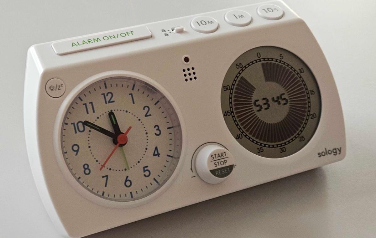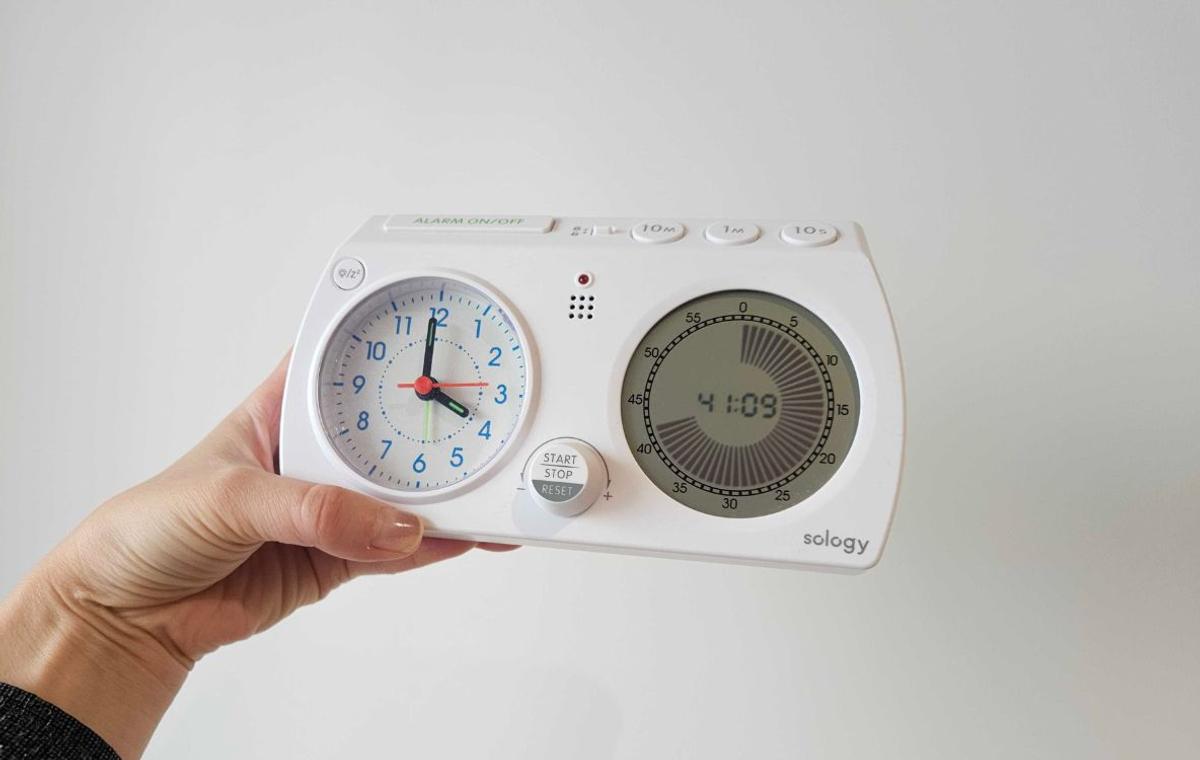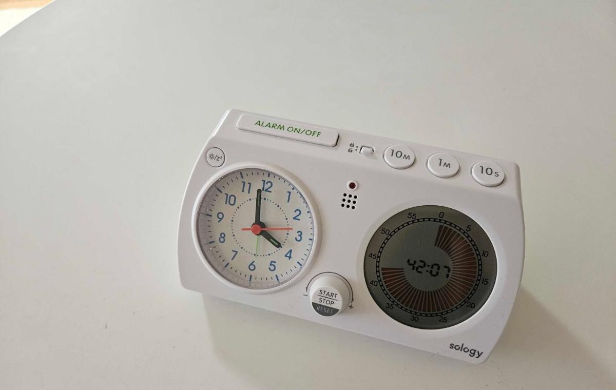 ソロジーの良いところは、ビジュアルタイマーであるとともに、アナログ時計でもあることです。パッと見て時間を把握できるので、余計な誘惑が減って時間を無駄にしません。