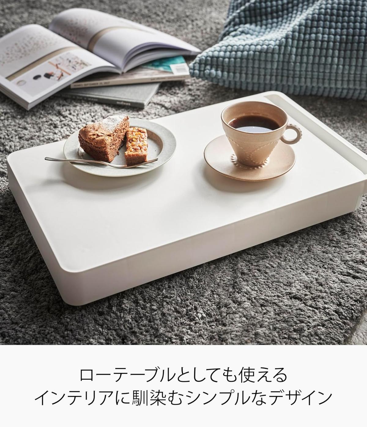 またシンプルなデザインは、山崎実業の「tower」シリーズらしいミニマルさ。台車としてだけでなく、ローテーブルのような感覚で使えるのもポイントです。