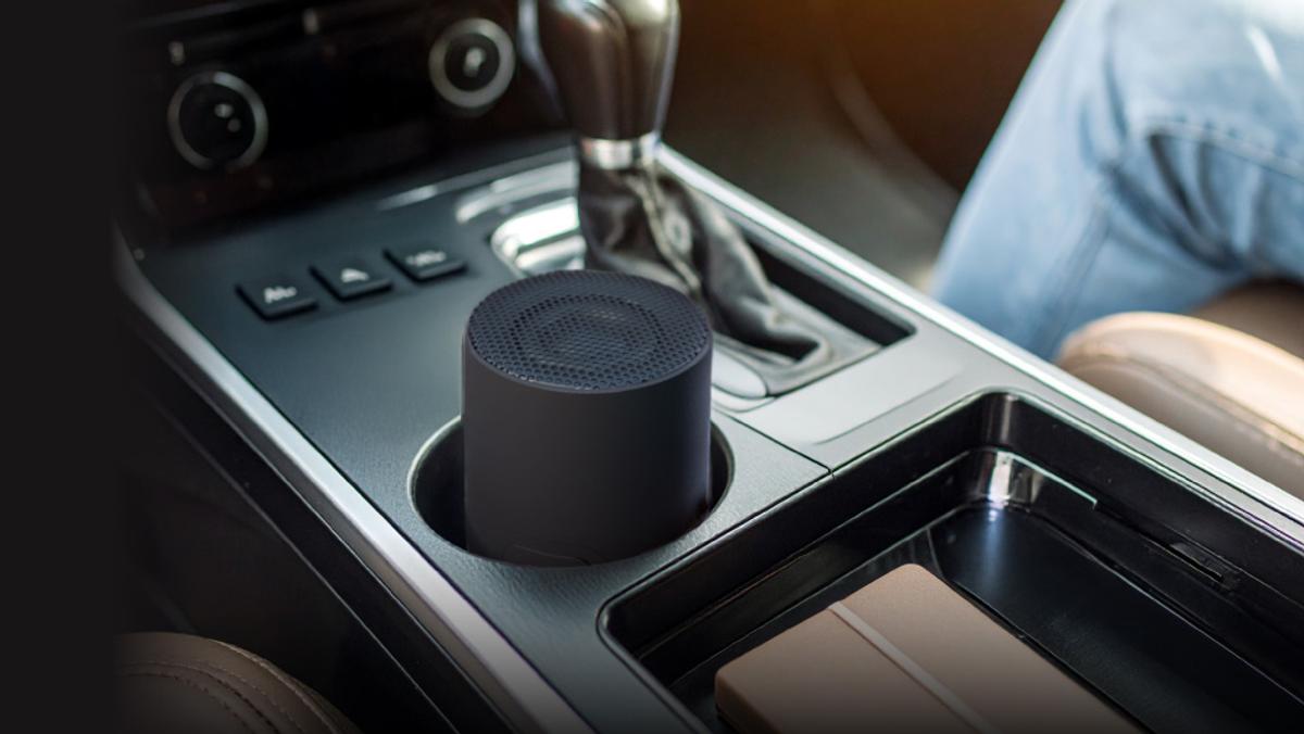 車のカップホルダーにもすっぽり収まるサイズ感なので、ドライブ中の音楽用スピーカーとして使うのもアリですね。