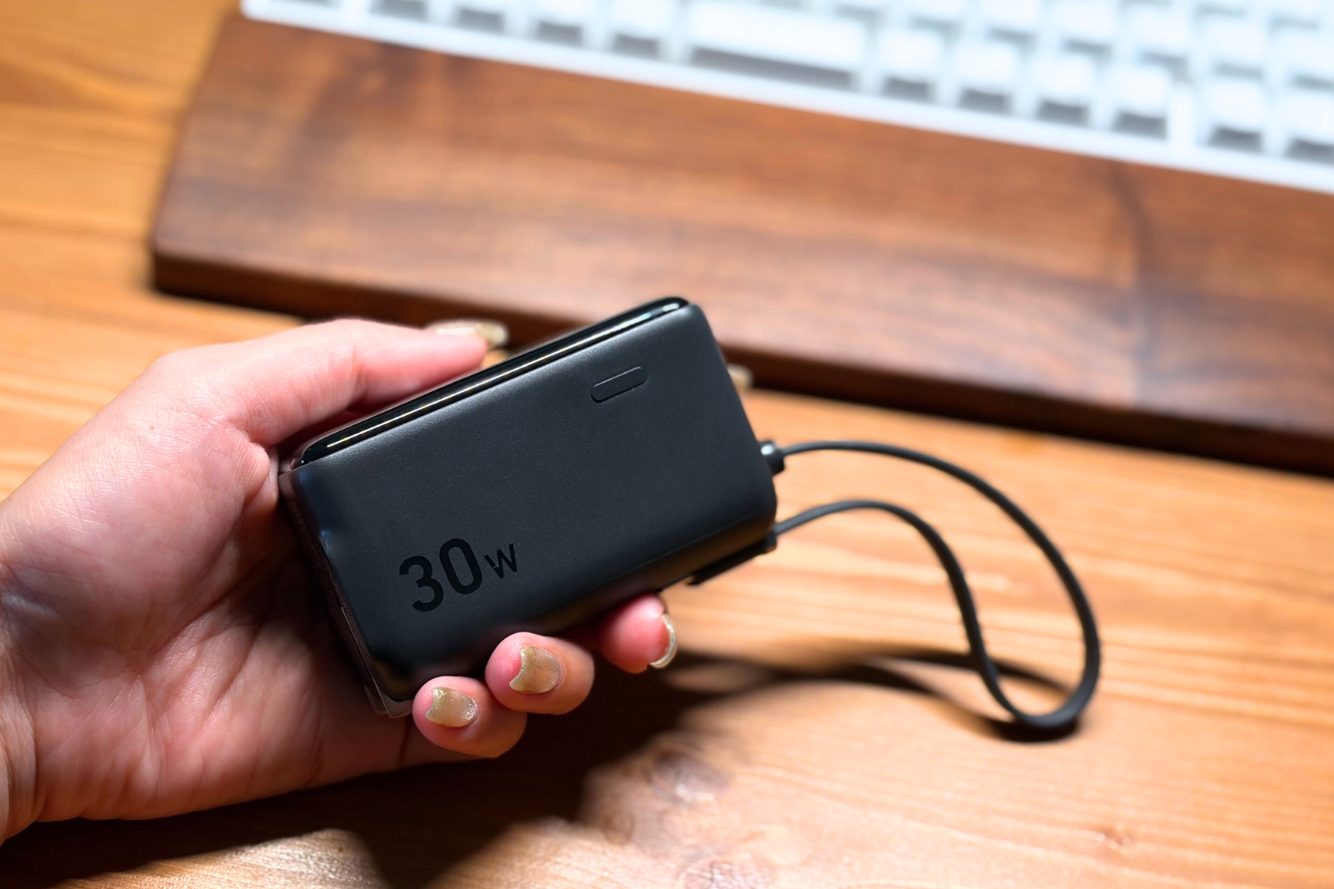 コンセントに挿せば30Wの急速充電器になり、抜けばそのままバッテリーとして持ち出せる。このシームレスな体験、一度味わうと戻れません。
