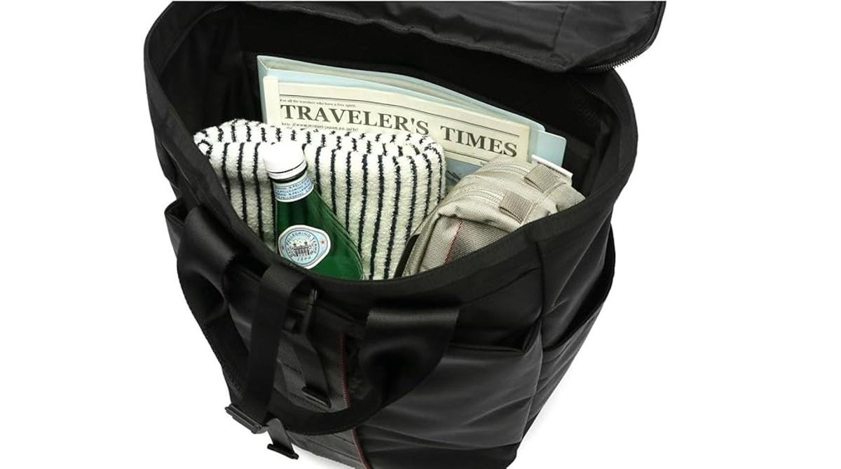 バッグのトップには丈夫な持ち手がついているので、トートバッグのように持ち歩くことも可能。背負うのが難しいシーンではこちらを活用できますね。