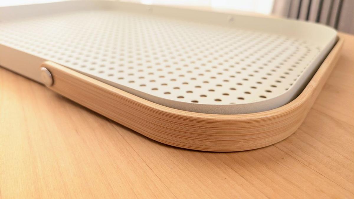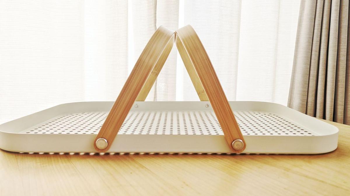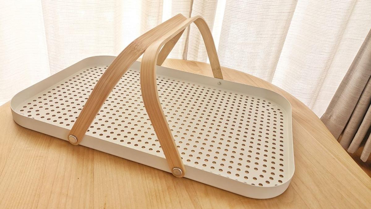 そんな問題を解決してくれたのが、IKEAから発売された「グローンフィスク」。スチール製のトレイに木製の持ち手が付いたアイテムです。