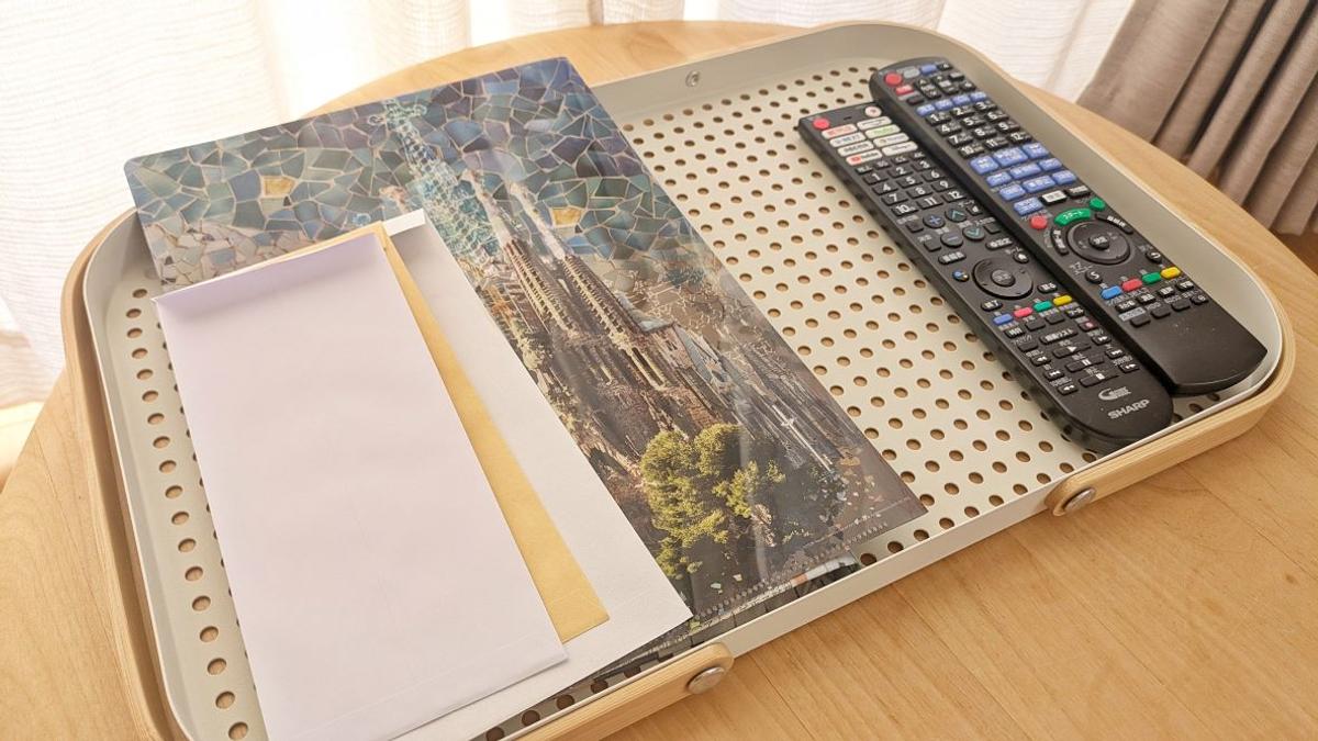 リモコンやメガネなど見失いがちなものも一緒に置けば、さらにテーブルの上が片付きますよ。