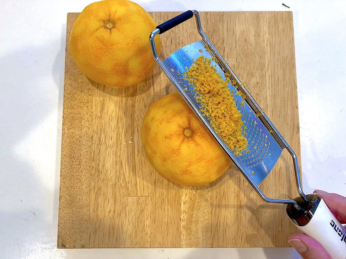 1. 甘夏を洗い、チーズおろし器を使って表面の皮を薄く削る。