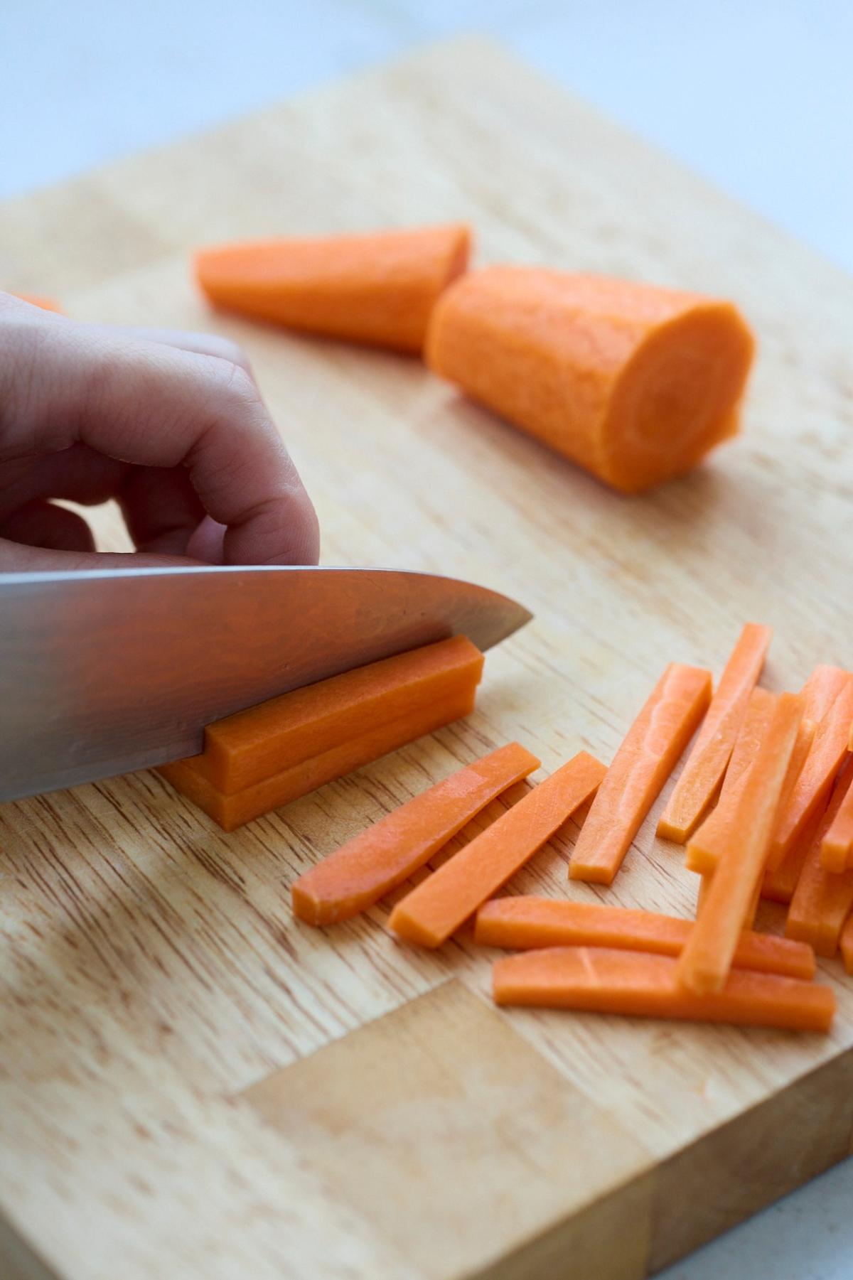 にんじん…小1本(100g) ▶長さ4cm、5ミリ角の拍子木切りにする