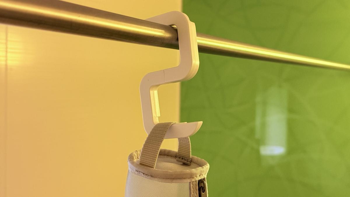 室内物干しにメイクポーチを掛けるなど、ちょっとした収納補助にも使えます。本格的なS字フックほどの安定感はありませんが、“応急的に使える”柔軟さがあるので、旅行先のホテルなどでも活躍してくれます。