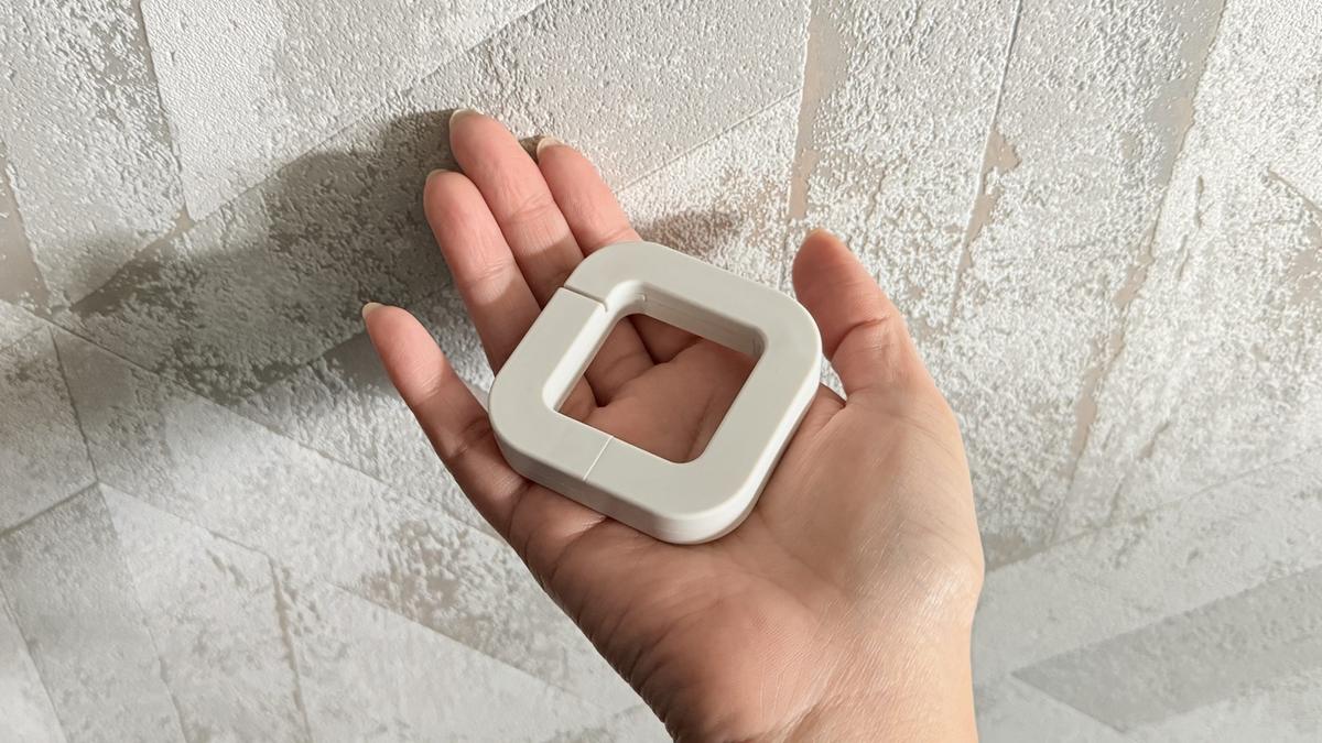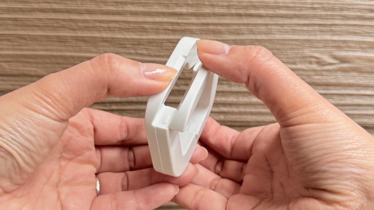 ちなみに、折りたたんだ状態は手のひらにすっぽり収まるサイズ感。さらに約28gととても軽く、それでいて耐荷重は5kgと頼りがいもバッチリです。