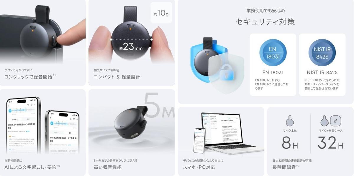 • Anker初のAIボイスレコーダー、議事録作成を「秒」で終わらせにきたぞ