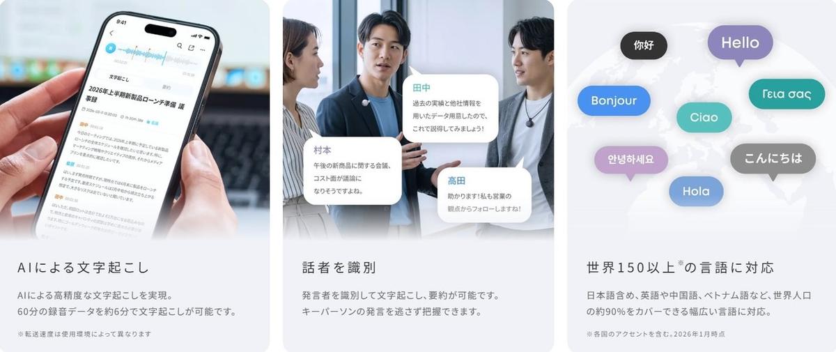 小さなボディに機能が凝縮され、「圧倒的な文字起こし効率」と「ウェアラブルならではの機動力」が集約された1台なんです。