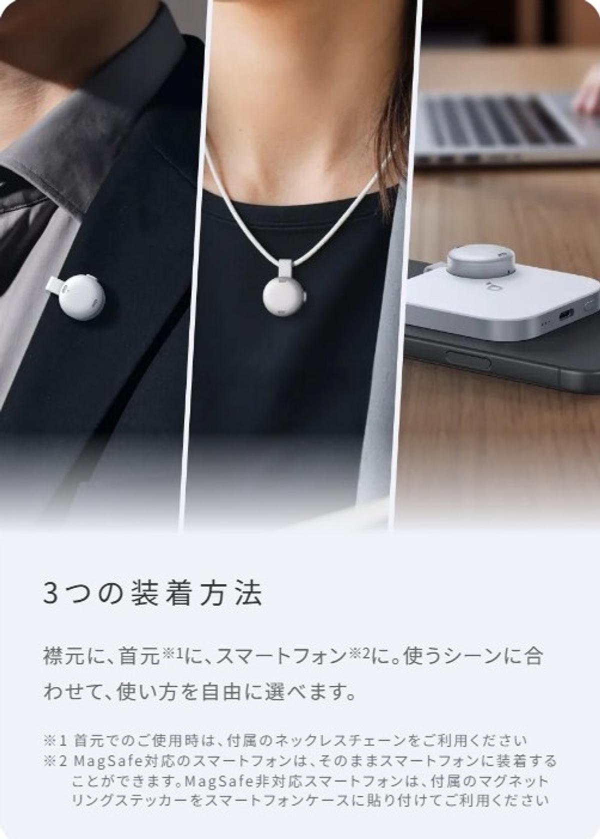 マイク本体のみでは、指先サイズの約23mmかつ約10gで世界最小・最軽量(2026年1月時点のメーカー調べ)。身につけても邪魔にならないコンパクトな設計である点は、見逃してはいけません。