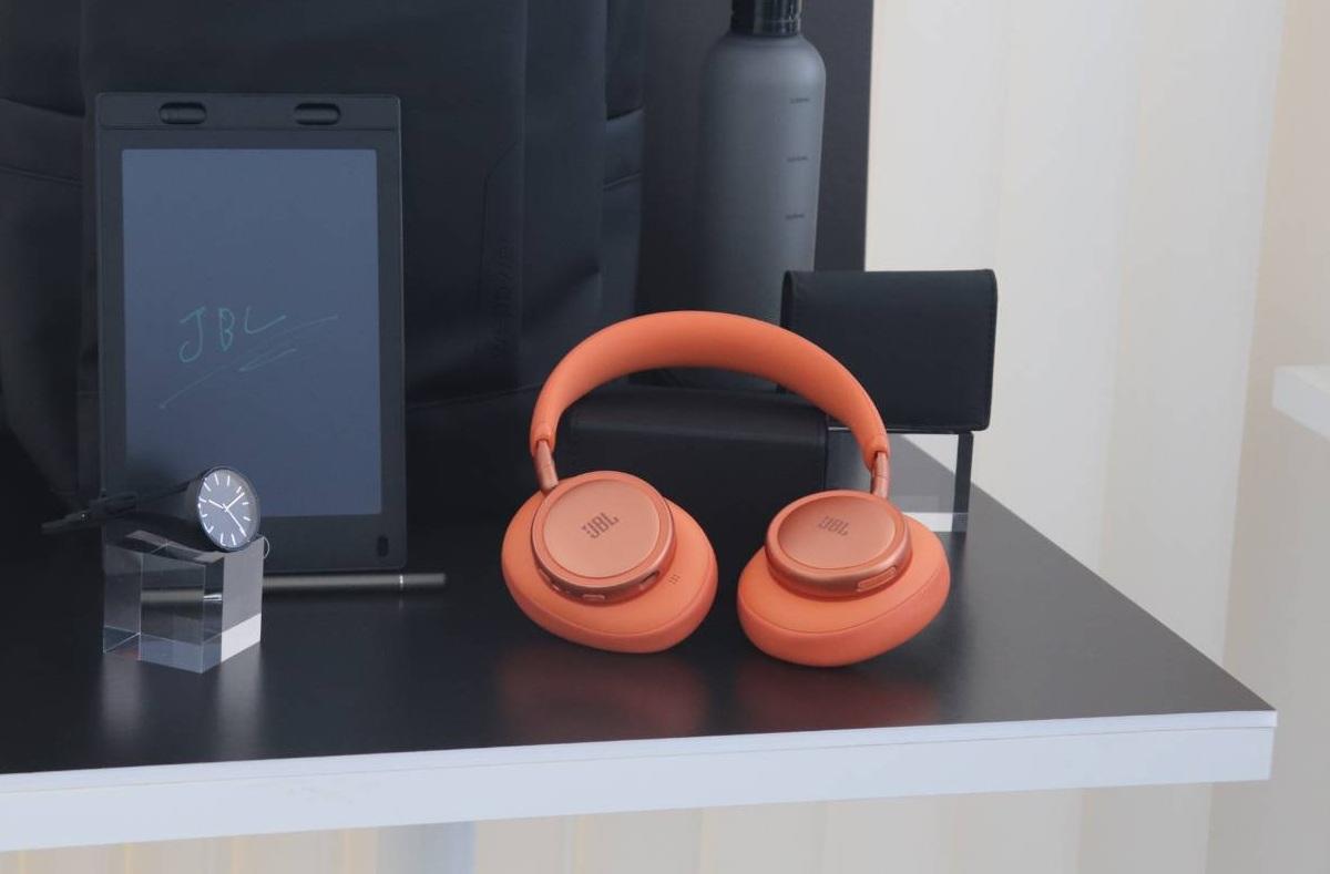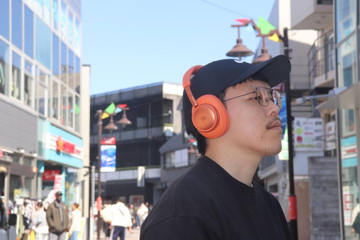 「Live 780NC」には、JBLのブランドカラーでもあるオレンジが。パキッとした発色のよさは、シンプルなコーディネートに一点投入するだけで、その日のファッションの主役になりそうな存在感。