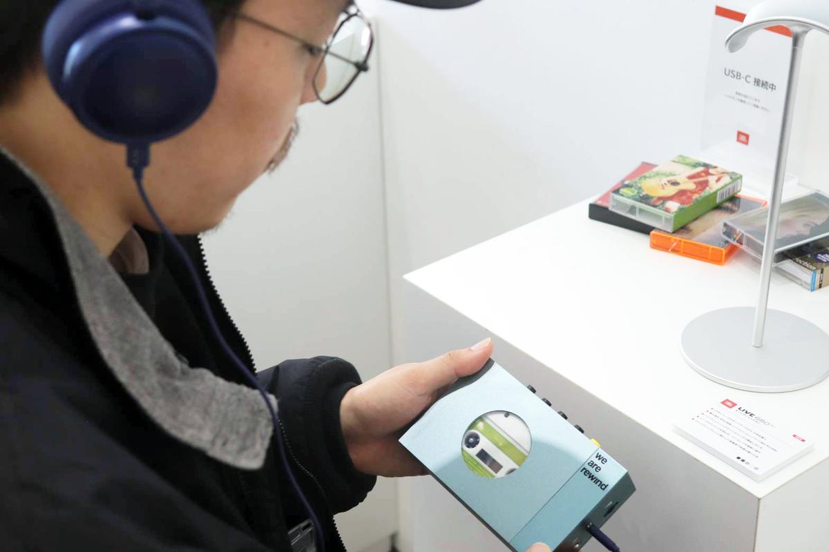 USB-C→AUXケーブルを使えば、3.5mmイヤホン端子のあるデバイスと接続させて有線式として使用できます。会場にはカセットプレーヤーが用意され、実際に接続した状態で試聴できました。