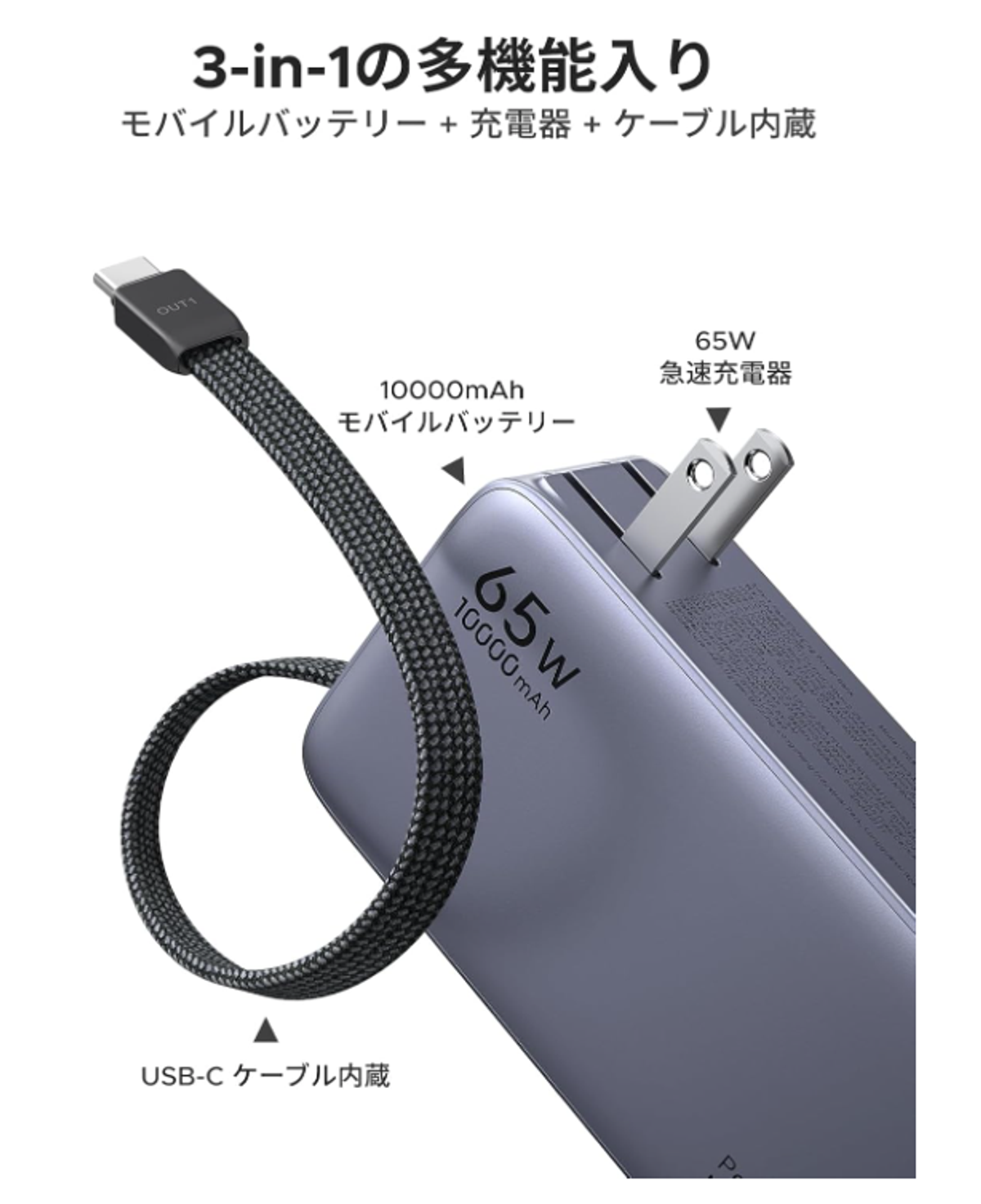 UGREENの「コンセント一体型モバイルバッテリー」は、AC充電器+モバイルバッテリー+USB-Cケーブルの“3役一体”というユニークな設計が特徴で、旅行や出張、カフェ作業などで荷物を減らせる便利なガジェットです。