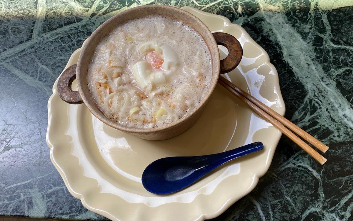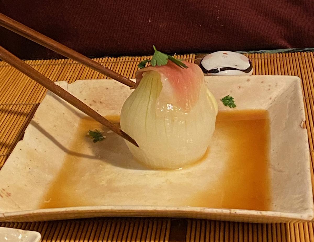 新玉ねぎの蒸籠蒸し(春蕾、レンコンも一緒に蒸した)、生ハム、イタリアンパセリ。ポン酢醤油で食べる。新玉ねぎ、めちゃうまい。