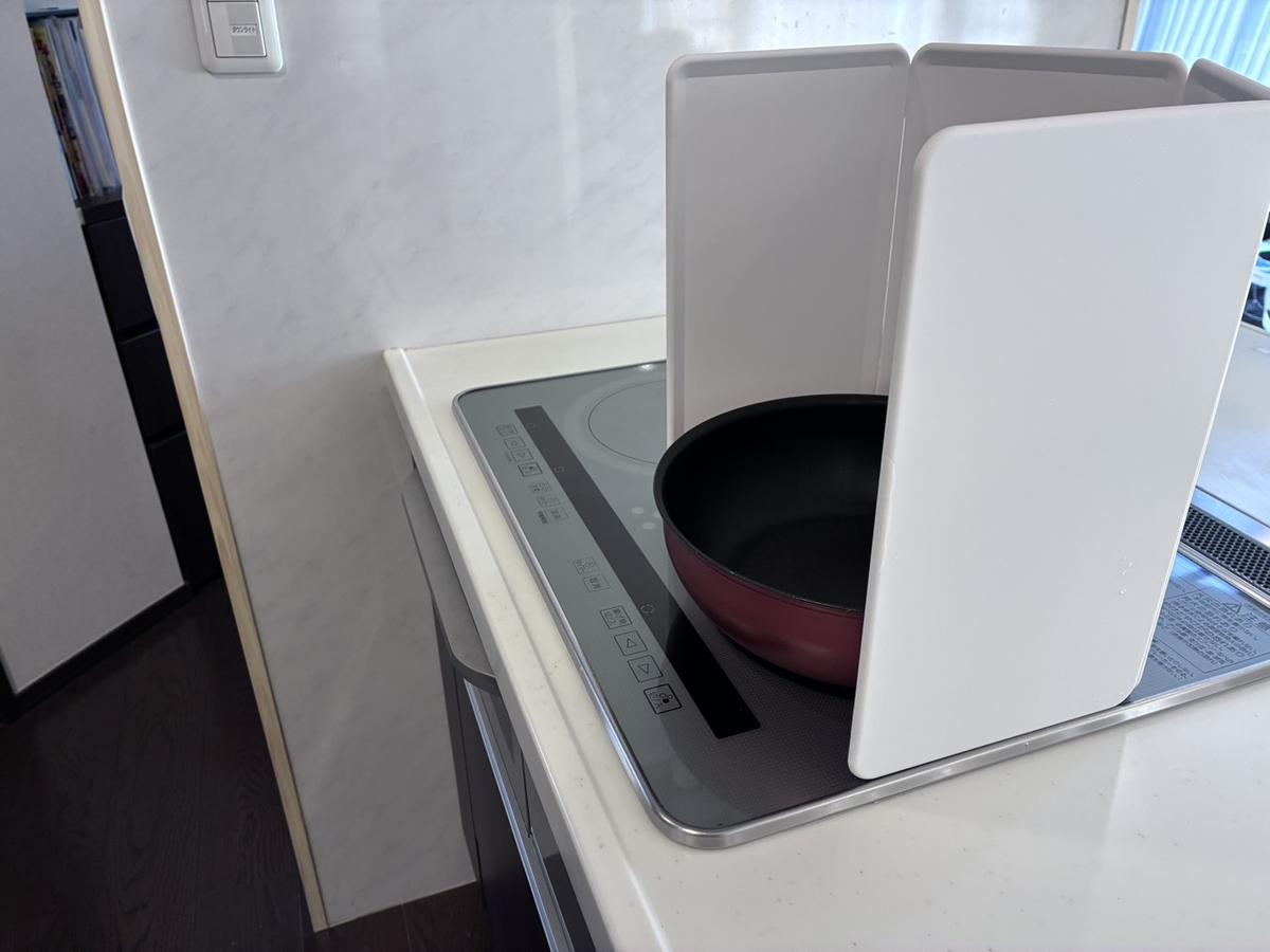 約1.2kgと適度な重みがあり、よほどのことがない限り、調理中に倒れる心配はなさそう。本当に油ハネを防げるのか少し心配ではあったのですが、まったく問題ありませんでした!