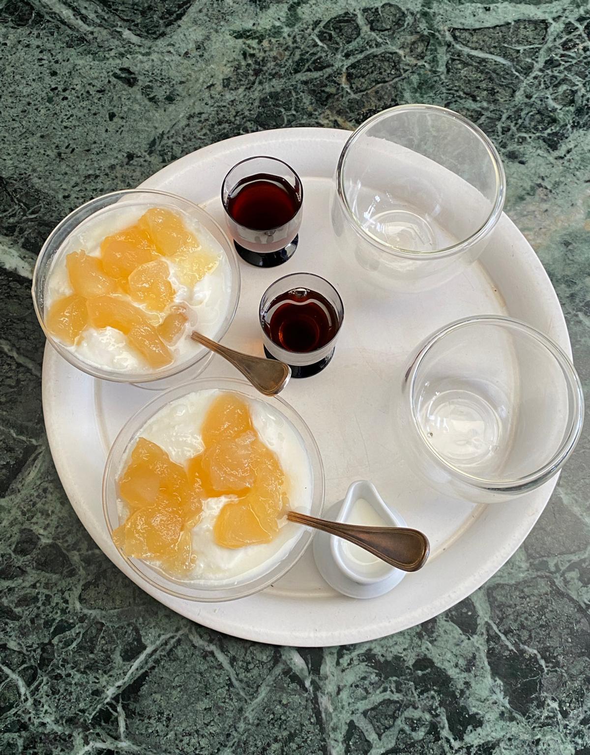 ヨーグルト+りんごジャム、今日の元気、紅茶、プロテイン