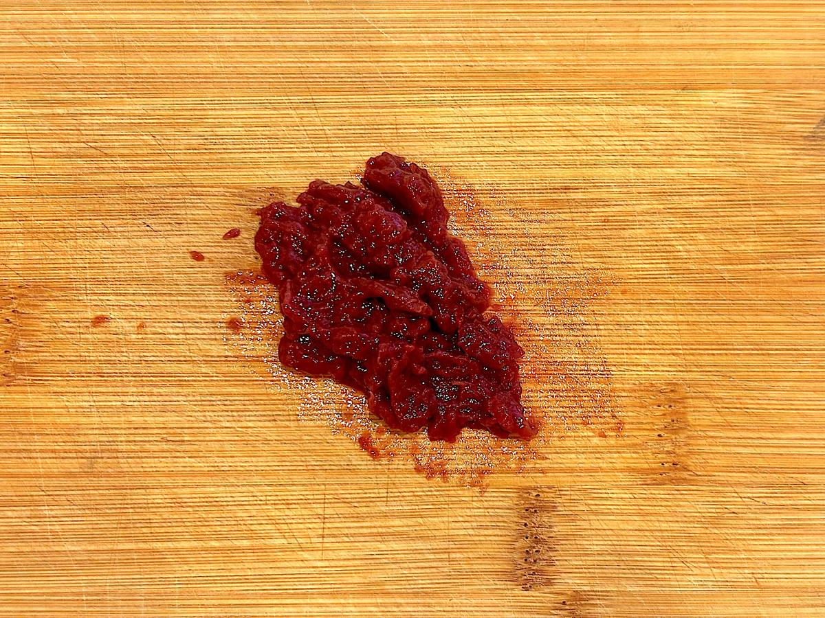 1. 梅干しは種をとり、果肉を包丁で粗めにたたく。